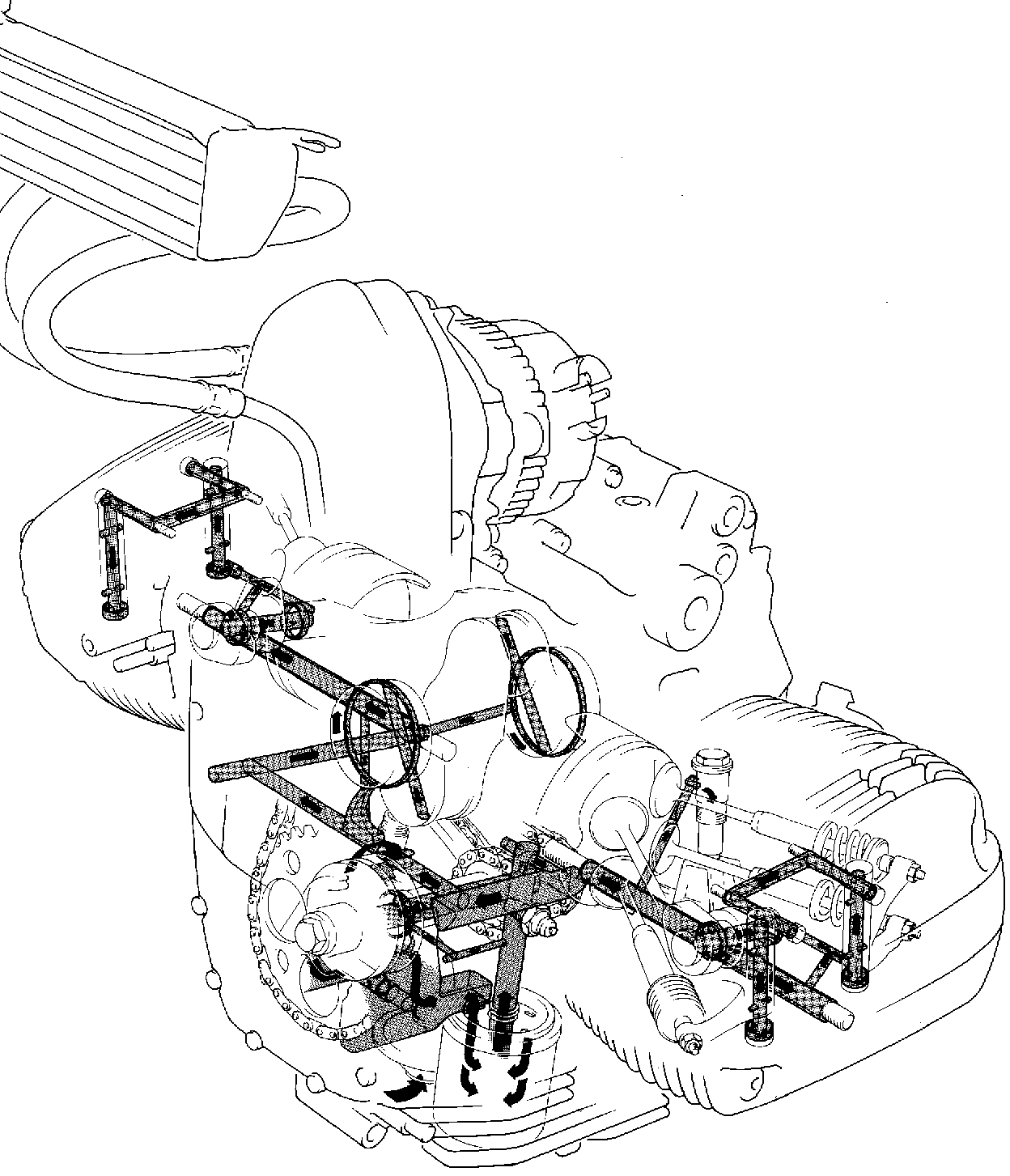 • bei der 1200er wurde schließlich wieder ein Heckrahmen eingeführt, der das Getriebe teilweise umgibt, und die Schwingenlagerung befindet sich im Heckrahmen (wo sich bei den 2-Ventilern auch schon war). Allerdings könnte es sein, daß die Ausführung bei der 1200er nun auch wieder seine eigene Problematik hatte.