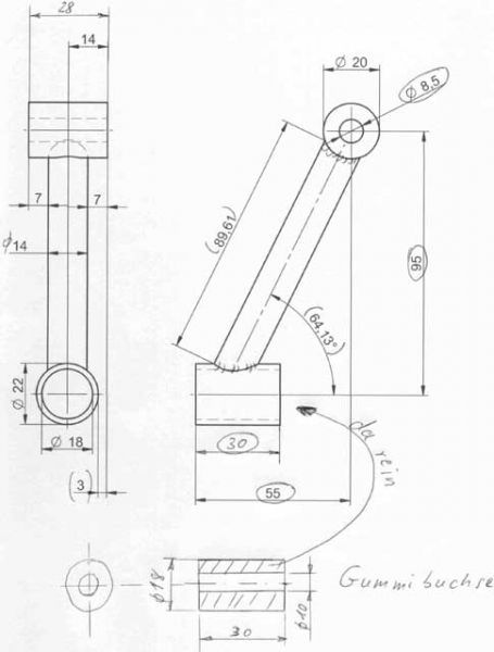 ñ eine kreative Reparatur am oberen Auge: Ersatz durch Stahlkonstruktion als "Zwischenplatte" (der Rest des Auges vom Getriebe wurde weggeflext)