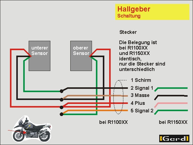 ò Stecker und Kabelfarben an der Hallgeber-Baugruppe der 1150er (a)