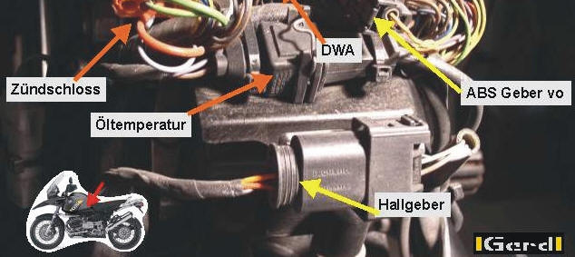 An den Steckern übrigens erkennt man einen Unterschied der 1100er zur 1150er: die 1150er hat zumindestens hier sehr hochwertige "SuperSeal"-Stecker verbaut (oben), die 1100er immer noch die einfacheren, durch den Spritzschutz viel klobigeren (rechts).