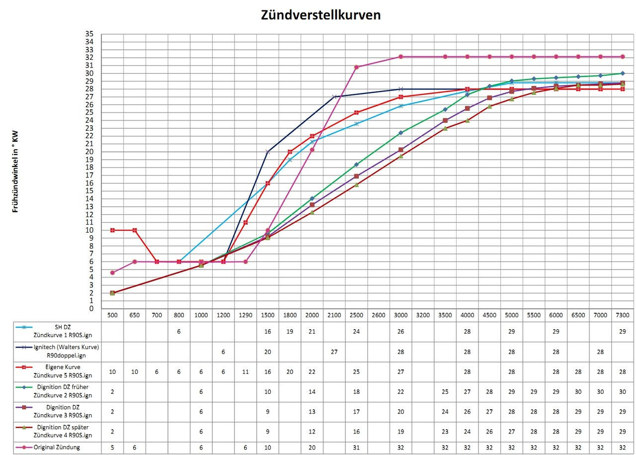 eine Vorzündung von 30-32° auf. Die Serienkurve stammt aus der Angabe